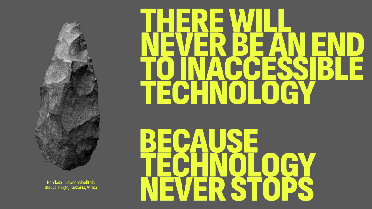 There will never be an end to inaccessible technology, because technology never stops.