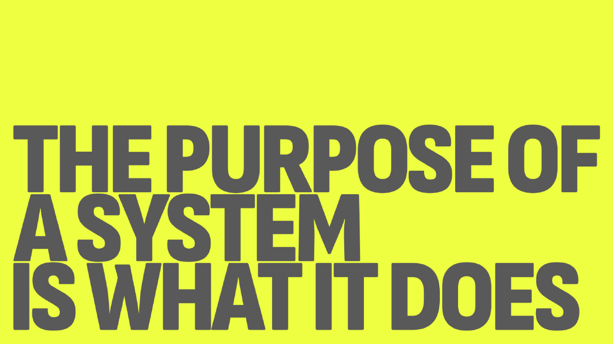 “The purpose of a system is what it does” is a quote attributed to Anthony Stafford Beer, a British theorist, consultant and professor.