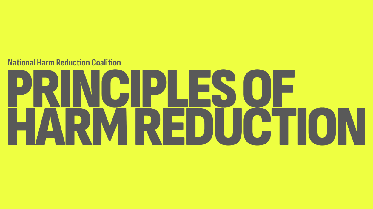 The National Harm Reduction Coalition has eight principles of harm reduction. They frame it as, quote “a set of practical strategies and ideas aimed at reducing negative consequences.” Endquote.