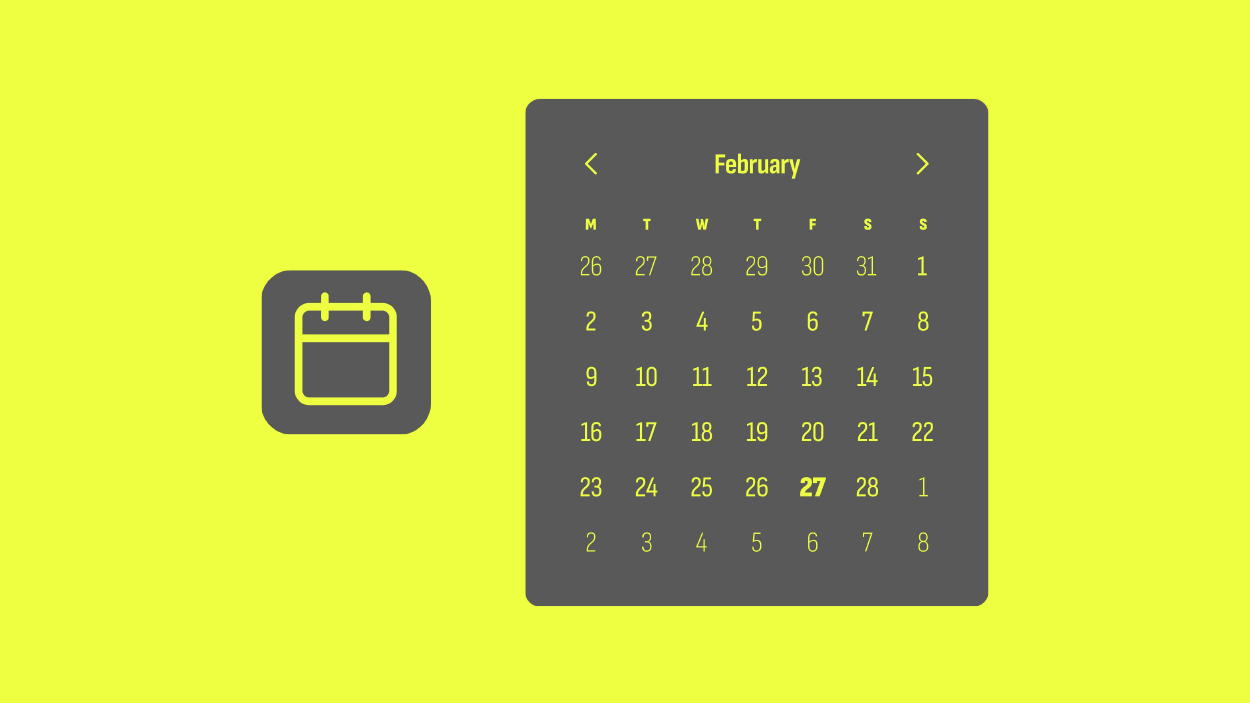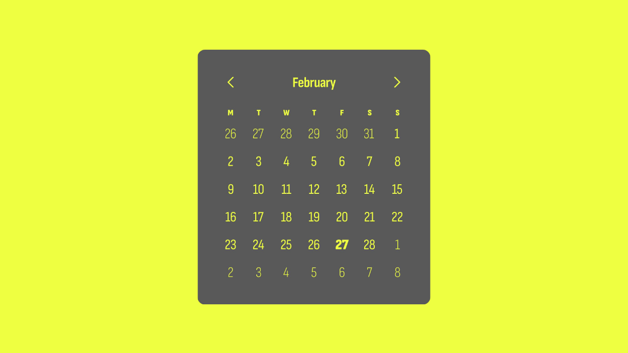We also have the date selection portion of the component, represented here as a calendar set to February.