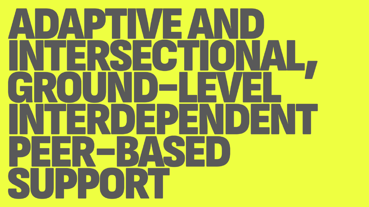 In threading all these voices and perspectives in, I’m hoping to communicate the adaptive and intersectional, ground-level interdependent peer-based support that is required.