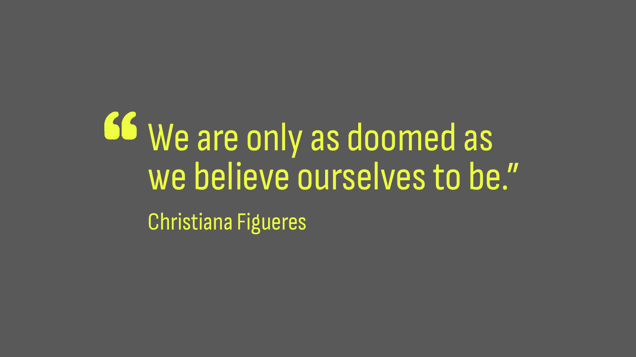 A better world is possible. In closing, I’d like to end with a final quote. This time it is from Christiana Figueres, a Costa Rican diplomat who was instrumental in the success of the 2015 Paris Agreement: